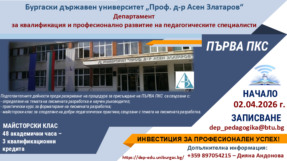 Професионално-педагогическите специализации са с начало 21.02.2026 г.: