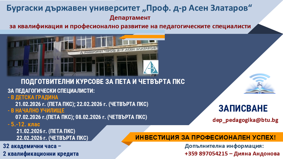 Подготвителни курсове за V и IV ПКС професионално-педагогическа квалификация (ПКС) ще се проведат както следва: